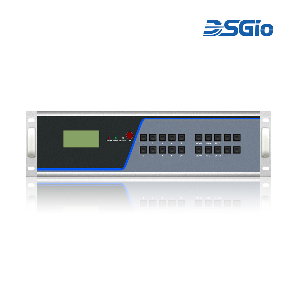 4. LCD display function: The front panel has an LCD display screen of ≥ 3.5 inches and 16 shortcut switch keys. The front panel can be operated and the LCD screen status can be read. The LCD screen can display the signal source status and channel display in real time, MAC and IP addresses, baud rate, and can be used for signal switching and pre plan storage and calling.